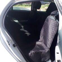 The quality is very good, it has zippers on both sides, so super easy to cover the back seat. Also came with a seatbelt for the pup. The picture is in a jeep grand Cherokee