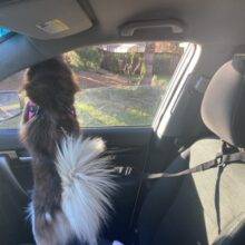I love this. I just adopted a 3 year old mix breed. He wants to be on my lap at all times. This isn’t safe when I drive so we now have a system. He gets in the backseat. I put his harness on and hook it to his “seat belt”. This goes securely around the headrest and keeps him in the backseat. It also keeps him safe from sudden stops. Last week while driving an old 2 lane highway a truck in oncoming traffic decided he was going to pass. The problem was that I was in my lane and he was heading straight for me. I had no where to go. I slammed on my brakes which allowed him the extra second to get back on his side of the road. Since Murphy had his harness and belt on he was safe and secure in his seat. Remember, DO NOT CONNECT THIS TO YOUR DOG’S COLLAR. ALWAYS USE SOME SORT OF HARNESS!!!