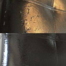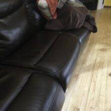 I should have taken a before photo so I could show the difference but I didn’t. We had one big tear in our “pleather” sofa as well as many scratches and small holes. Most were made by our cat walking on the couch and her nails just made little pin holes. The tear was about the size of a quarter and was caused by a bug spray coming in contact with the couch and delaminating it. I have to say, this product does a better job fixing large holes/tears than small. Our couch is chocolate so I used the black. I also did’t need the patch material. Applied one coat, gave about an hour to dry then reapplied. You can’t see the big hole unless you look for it. so much better than before.