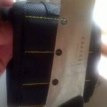 Wonderful wristband. The quality is excellent, well holds metal scissors, knives, all sorts of screwdrivers. Now you do not have to keep anything in your teeth.