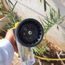 Lightweight. Dispenser emptied at the same rate no matter how I set it. Comfortable locking grip. However, the water pressure is lower than I expected.